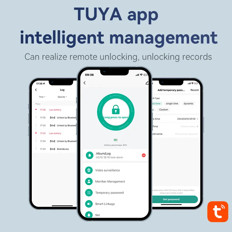 - فتح القفل عن بعد بواسطة التطبيق الذكي: انقر لفتح القفل عن بعد عبر تطبيق مخصص، لسهولة وصول الضيف وإدارة المنزل.